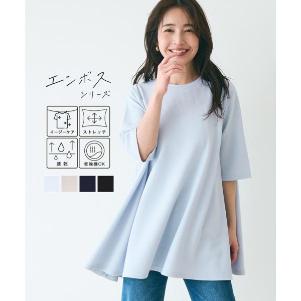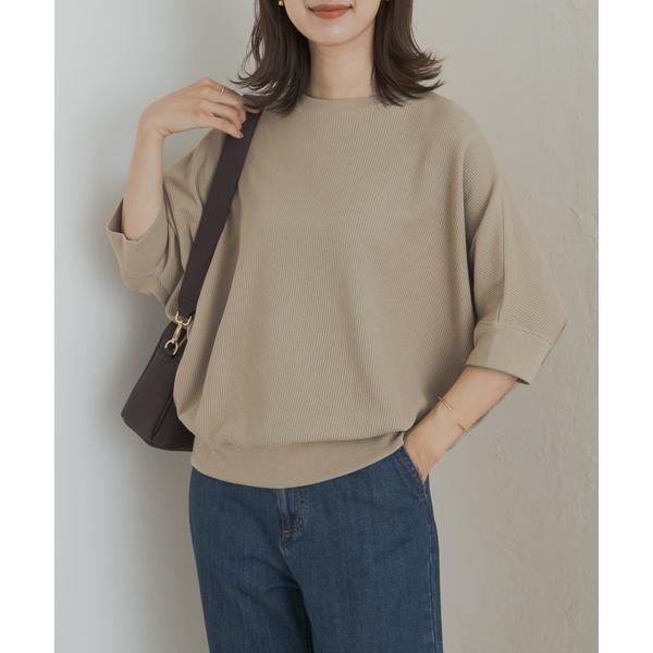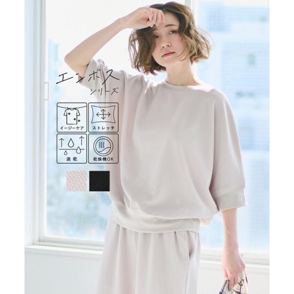 【半袖】柔らか綿混素材パール調ボタンTシャツ