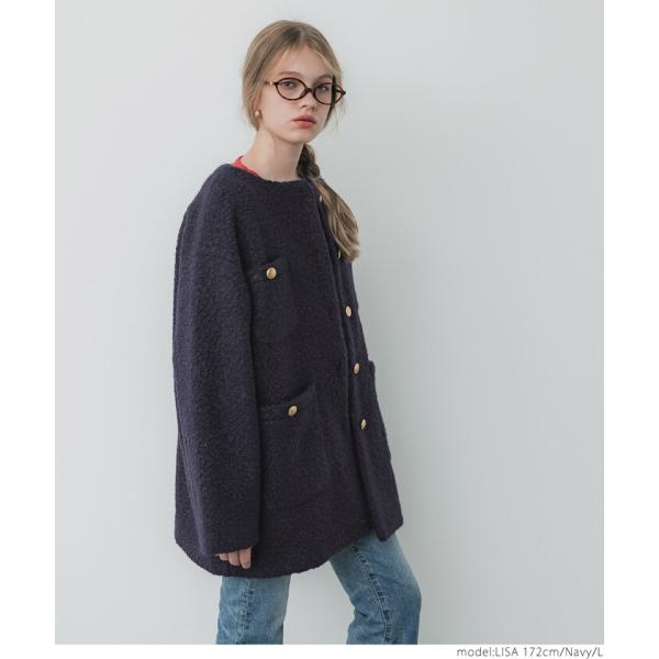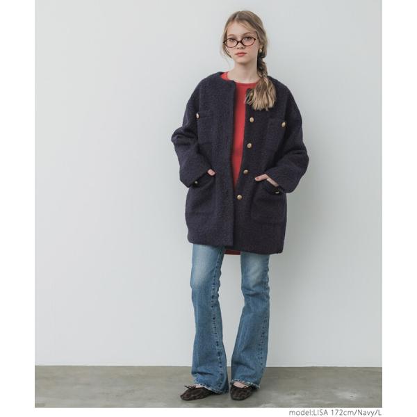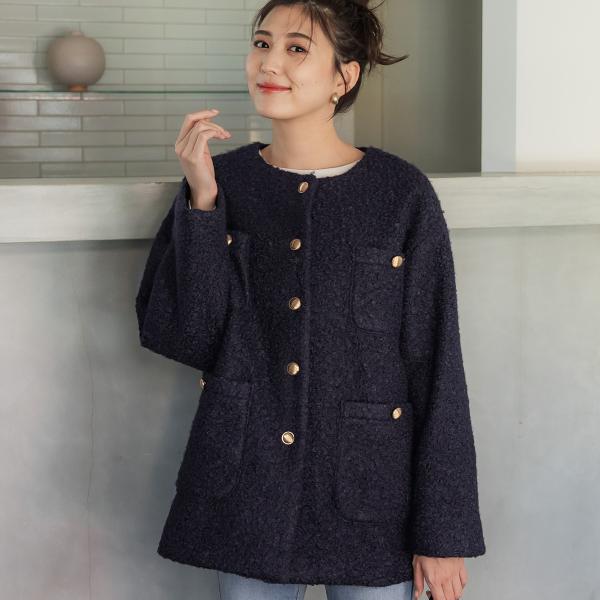 商品名:¥新色登場/ プードル金釦ノーカラーコート 全4色