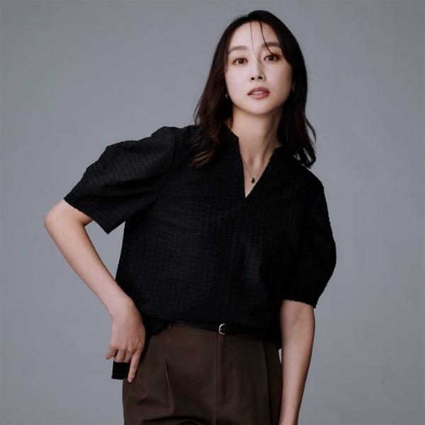 型番:15383330ブランド:アンタイトル商品名:【吸水速乾ストレッチVネック】フォルムスリーブ ブラウスカラー:オフホワイト(003)/ブラック(019)/ブルー(092)