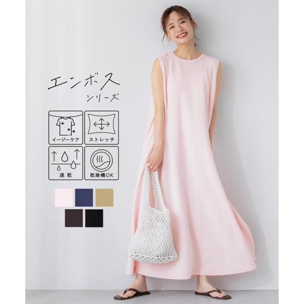エンボス加工マキシ丈ノースリーブワンピース 全6色