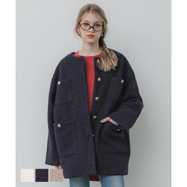 ¥新色登場/ プードル金釦ノーカラーコート 全4色