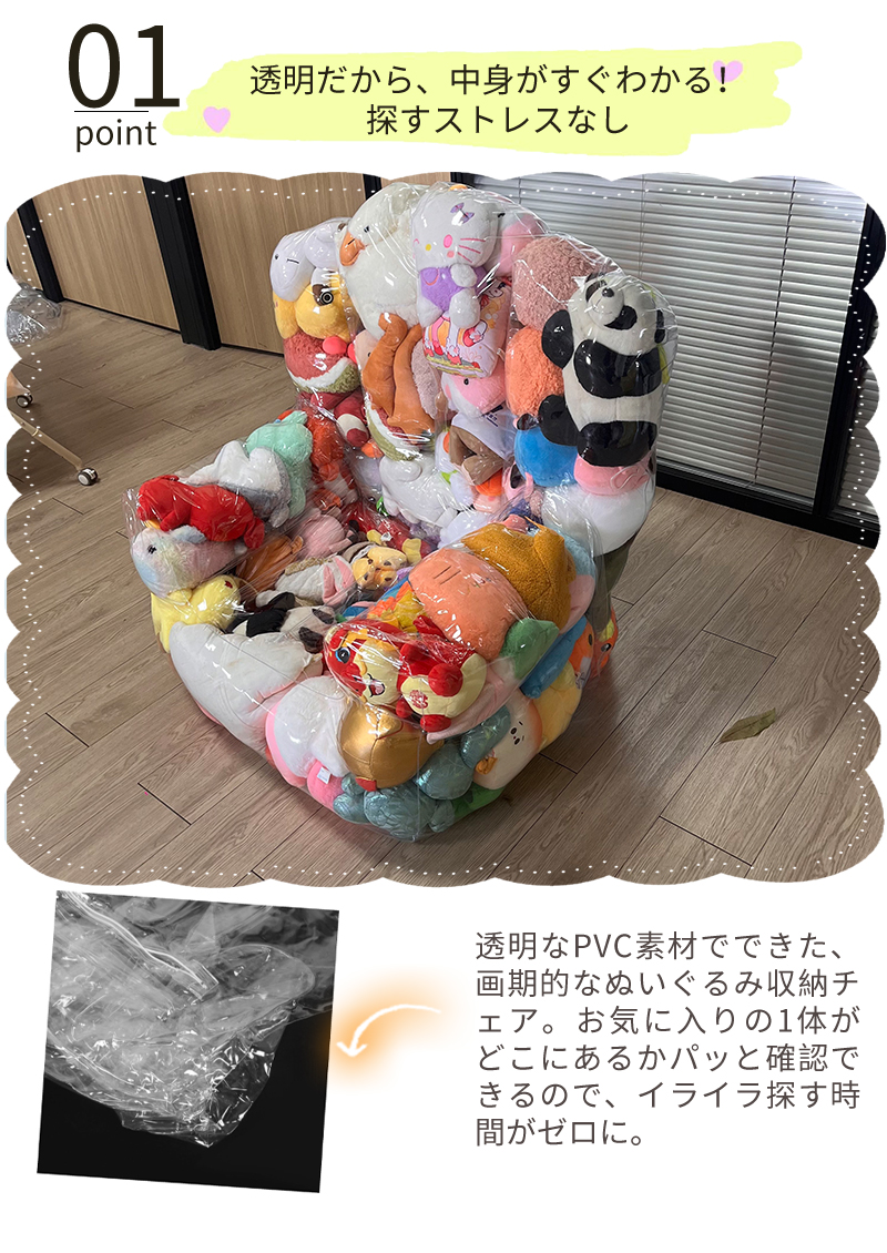 ぬいぐるみ収納 ビーンバッグ ソファー キッズ 子供用 椅子 ソファ ローソファー 透明 おもちゃ 収納チェア ローソファ フロアソファー 防水 防塵 防湿 防カビ