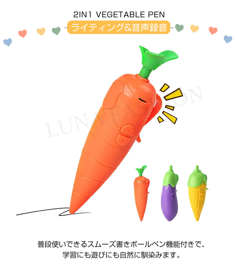 にんじんペン 録音ペン 2 in 1 書き込みと録音ペン かわいい ボールペン 愛らしい文房具 野菜デザイン ボールペン