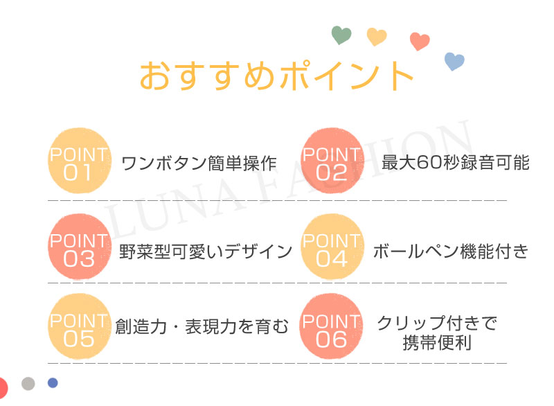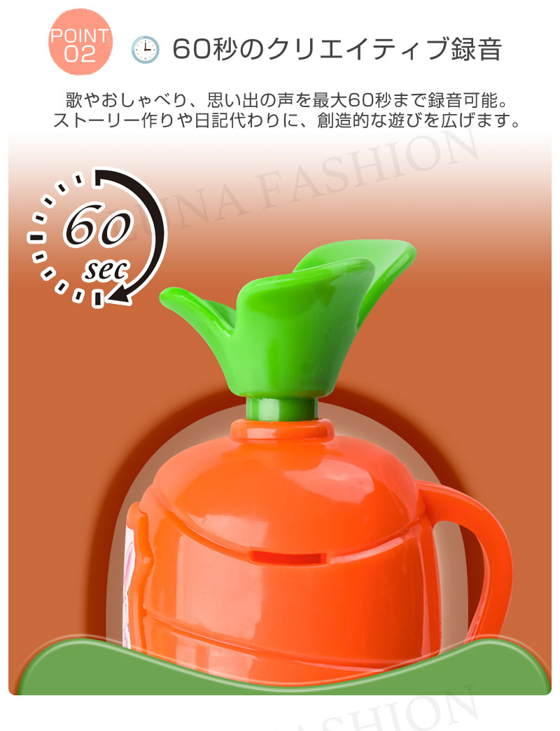 歌やおしゃべりを最大60秒まで録音。物語作りや日記代わりに最適。