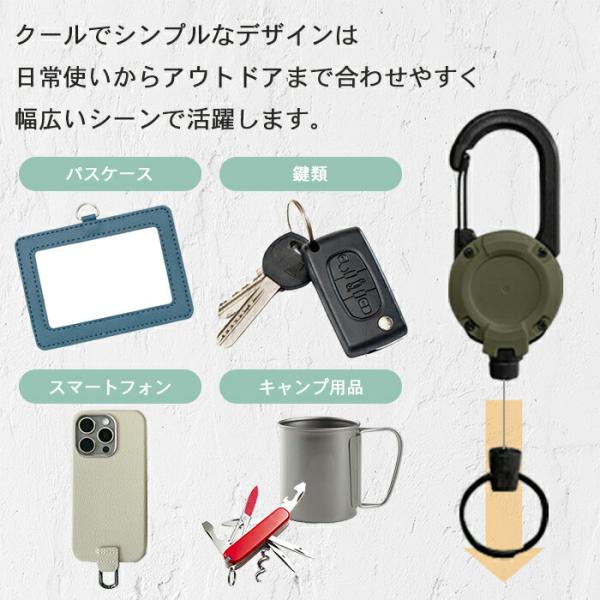 日常的に使いたいアイテムやアウトドアや作業現場で活躍するアイテムをお探しの方にぴったりのリールキーホルダーです。