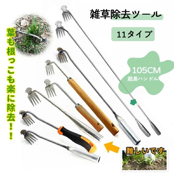 雑草除去ツール 新しい除草アーティファクト 草抜き 草刈り 根こそぎ 除草ツール 草取り 熊手 レーキ 4本タイン 9タイプ 11本タイン 快適な柄 雑草抜き