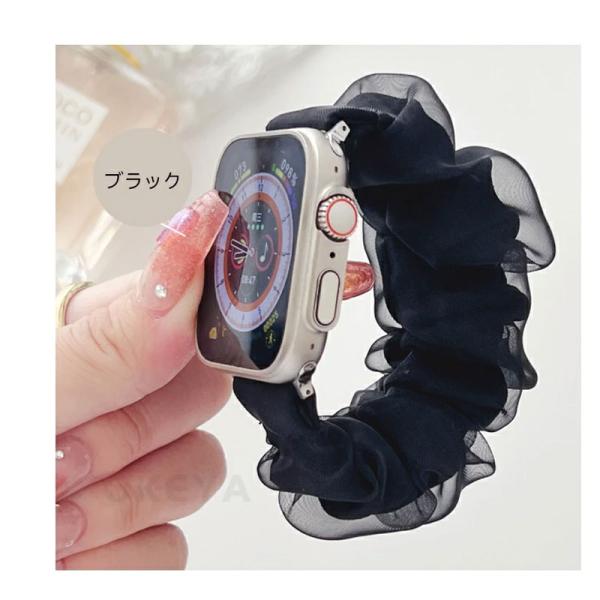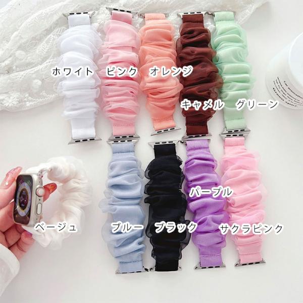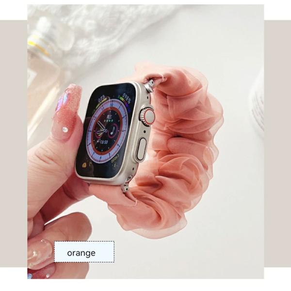 Apple Watch バンド シュシュ アップルウォッチ 時計 腕時計 レディース スマート シュシュ シアー フリル 睡眠 用 シルクAndroid かわいい 韓国 防水 SE
