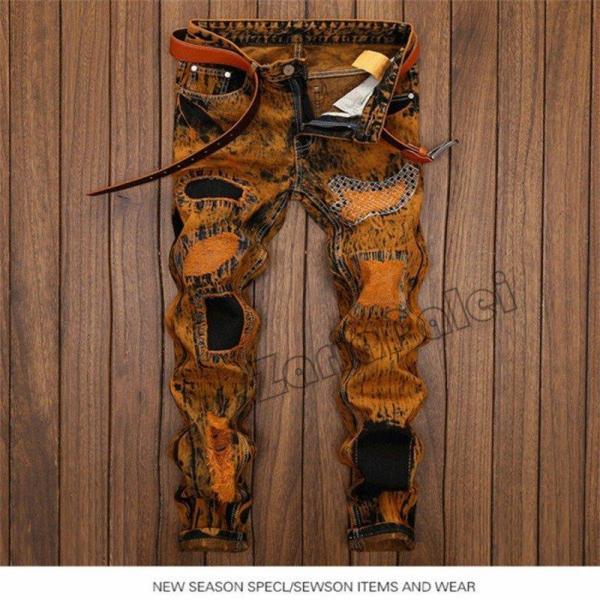 ジーパン メンズ デニムパンツ ヴィンテージ風 ジーンズ rose 刺繍 ダメージ加工 ウォッシュ クラッシュ スキニー パンツ