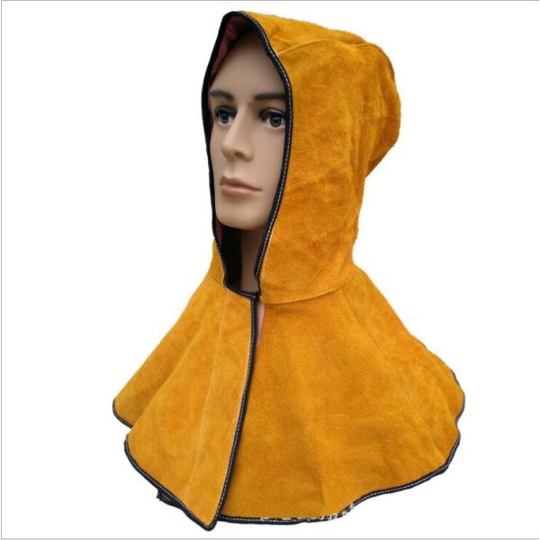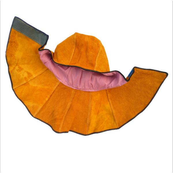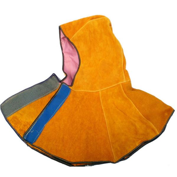 溶接フード 牛革スプリットレザー キャップ付き ネックショルダードレープ ブラウン 耐熱 頭部保護