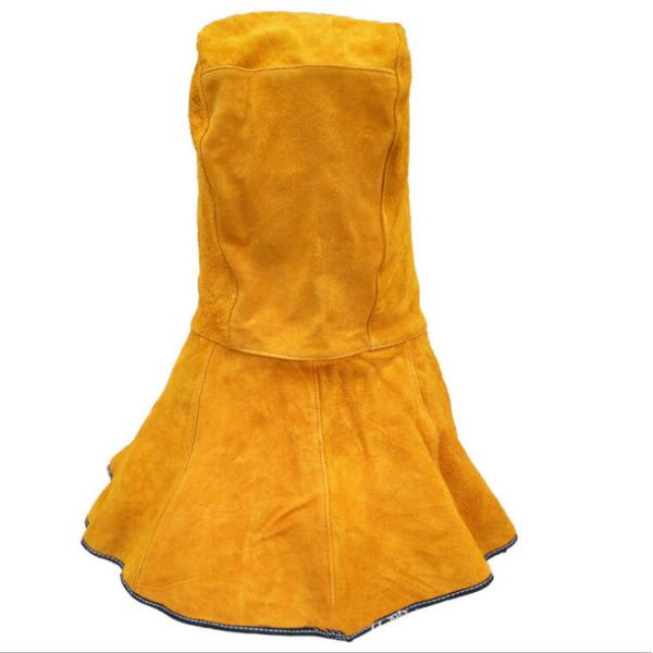 柔軟で丈夫な牛革スプリットレザーを使用しています。ネックショルダードレープ付きでベルクロ式のサイズ調整が可能です。ロックステッチシームとアメリカンケブラー糸で耐久性を高めています。素材は牛革スプリットレザーとコットン裏地です。