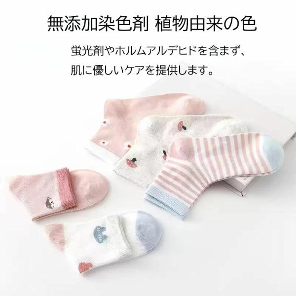 女の子用メッシュソックス 5足セット 綿素材 通気性抜群 ホルムアルデヒド不使用 植物由来染料 キッズ靴下