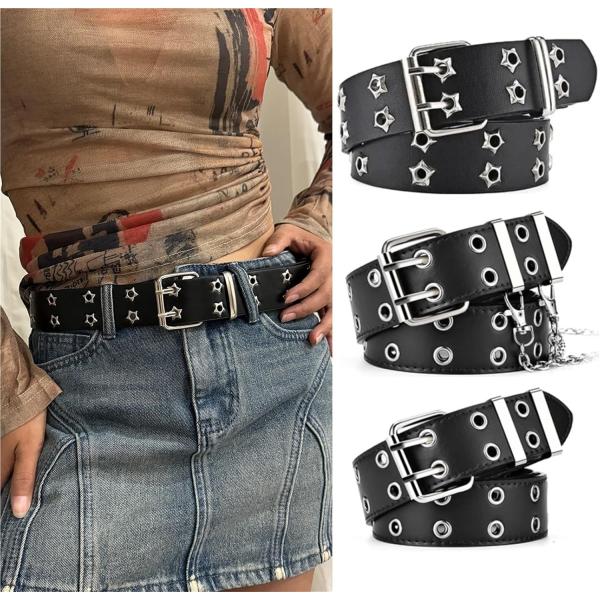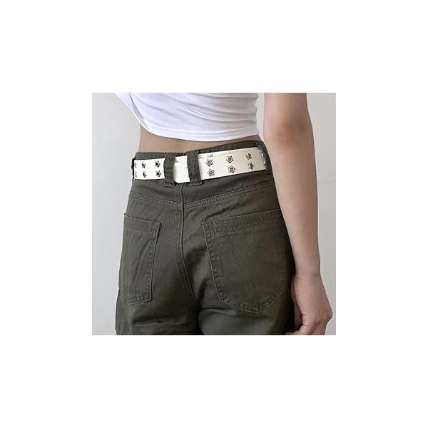 パンクスタイル スタッズデザイン PUレザーベルト 幅3.3cm 全長110cm ホワイト ダブルホール レディース メンズ