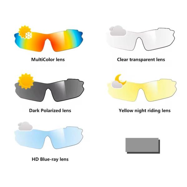 偏光サイクリンググラス 5組レンズセット 紫外線カット メガネ対応 スポーツサングラス 風防ゴーグル