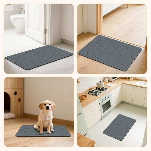 サイズは幅40cm×奥行60cm×厚み約1.5cmです。表地は天然ダイアトム土、裏地は滑り止めポリエステル樹脂コーティングです。カラーはグレー、ブラック、ホワイトの3色から選べます。水洗いが可能でお手入れが簡単です。