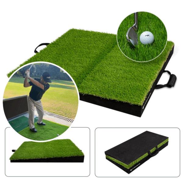 ゴルフ練習マット 折りたたみ式 4種類傾斜 高低差付き 人工芝&ラフ芝 屋内屋外用 左足上がり 右足上がり つま