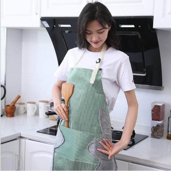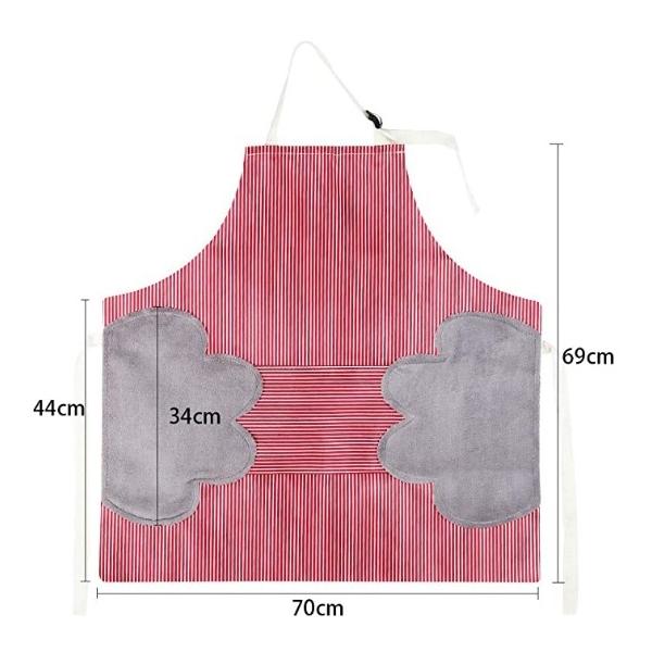 2.デザインの特徴:このエプロンは普通のエプロンとは異なります。このエプロンには、両側タオルが付いています。この設計により、調理中に手を拭くできます。料理する途中、電話を出ることができます。