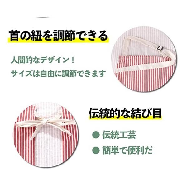 調節可能、脱着が簡単:さ首ひもはバックル式で簡単に長さ調節が可能です。腰ひもはしっかりした前結びもゆったりした後ろ結びもできるように長めに作られています。体格の大きい方でも着脱が非常に楽です。