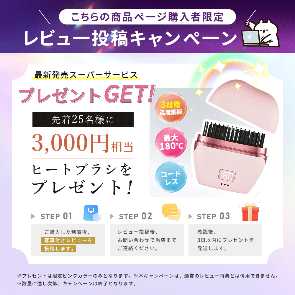 ☆イベント内容:商品到着後レビューを書くだけで、故障保証が2倍の365日に延長!