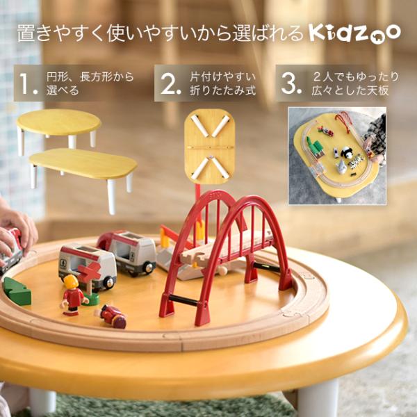 Kidzoo キッズー 折りたたみ キッズ座卓テーブル 木製 円形/長方形 名入れプレート(有料)対応 KDT-1543 KDT-2700 子供テーブル