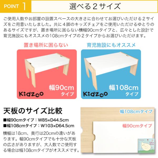 Kidzoo キッズー プレイテーブル 幅108cm 天板リバーシブル ナチュラル/ホワイト KDT-3567 名入れプレート(有料)対応 キッズテーブル