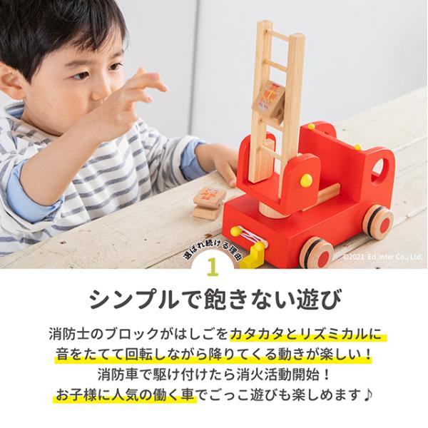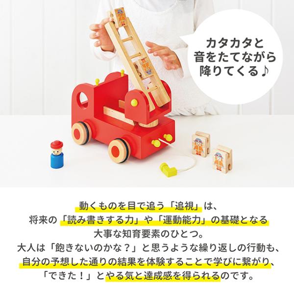 GENI カタカタ 森の消防隊 木製はしご車 スロープトイ 3歳 有料名入れプレート 特典あり