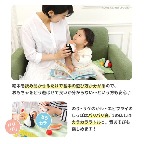 検索キーワード:えほんトイっしょ 布おもちゃ ままごと おにぎり 食育 絵本 知育玩具 1歳半 エドインター GENI