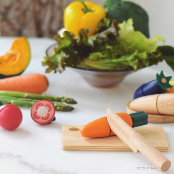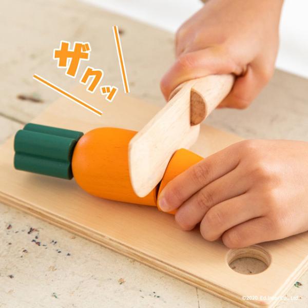 とれたて気分の木製にんじんで、料理ごっこが広がります。