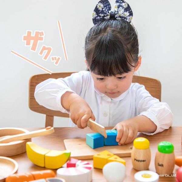 さくさく切れるよ 木のままごとあそび。おいしそうなとれたてさかな。