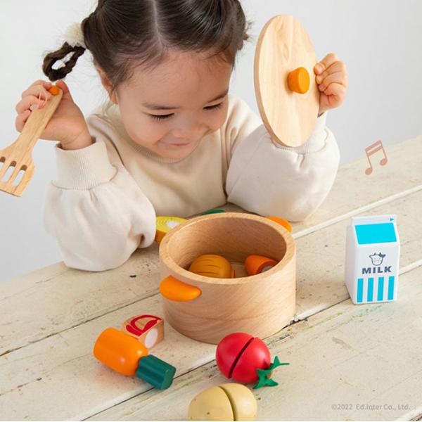検索語:大きいおなべ 木製おなべ フタ付き 大容量 ままごと 料理ごっこ 調理器具 3歳 GENI ジェニ エドインター ed.inter