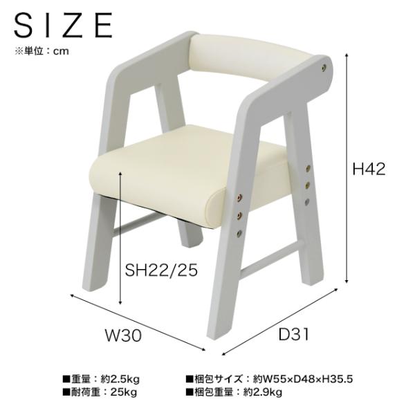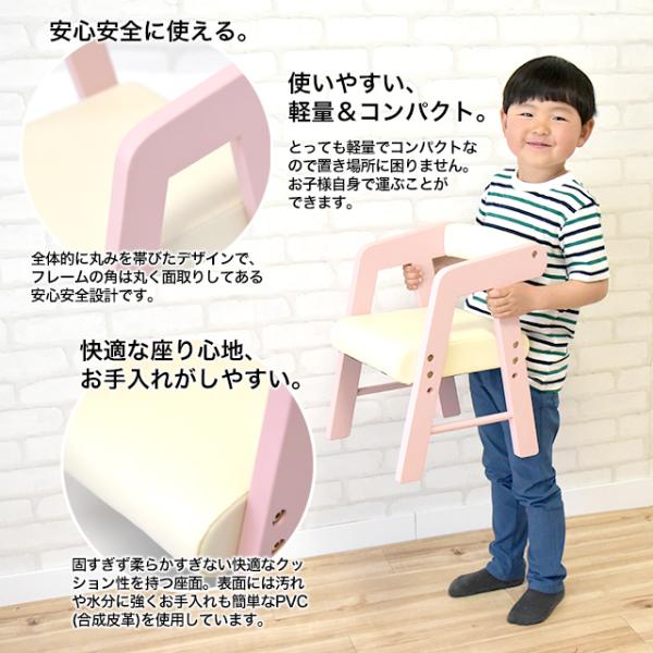 座面にPVCを張った子供椅子。座面が汚れてもすぐに拭けば簡単に落ちます。肘付きで、お子様のお尻をすっぽり包んでくれます。