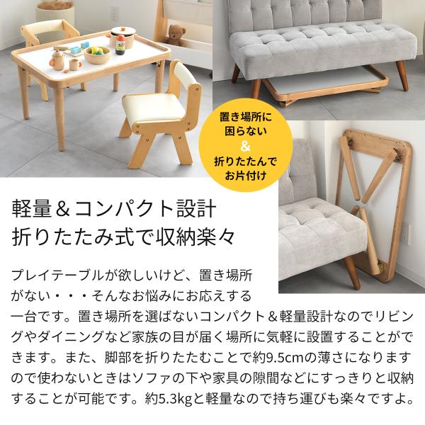 Kidzoo キッズー フォールディングプレイテーブル 折りたたみ 木製 天然木フレーム メラミン天板 幅75cm KDT-3721 名入れプレート(有料)対応
