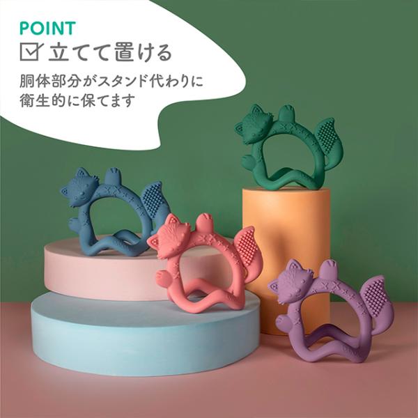形やテクスチャーが部分ごとに異なり、歯ぐずり期のムズムズを段階的にサポートします。歯が生えはじめる前後の不快感を和らげるだけでなく、噛む練習にもつながります。