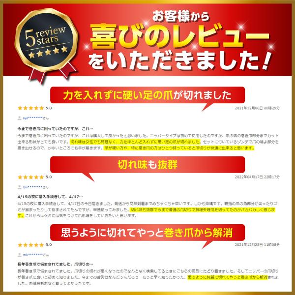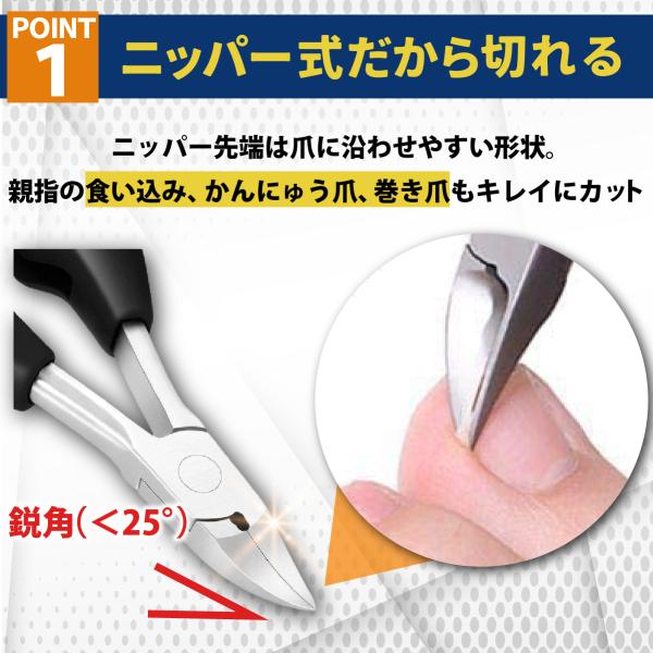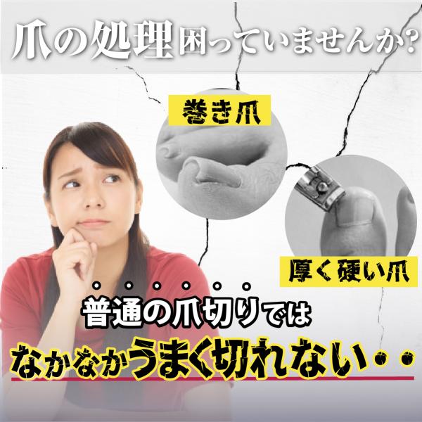■普通の平型爪切りとは違い、硬く分厚い爪やガンコな巻き爪もしっかり切ることができます!