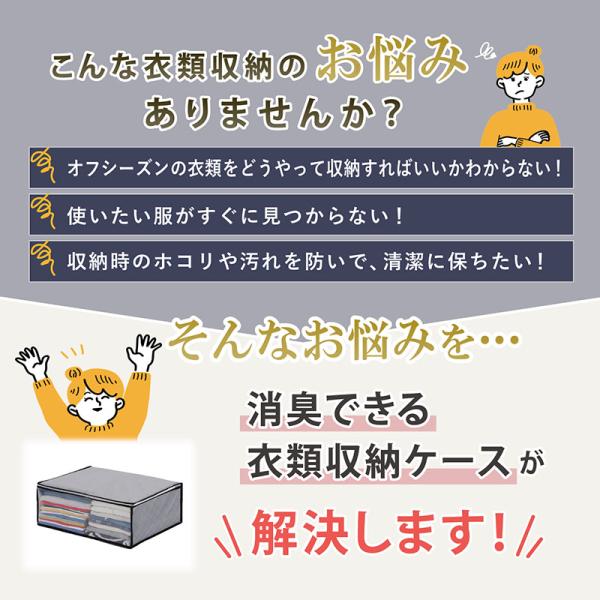 ●活性炭のチカラで消臭保管。活性炭シートがにおいをしっかり消臭。大切な衣類などをにおいやホコリなどの汚れからしっかり守る。