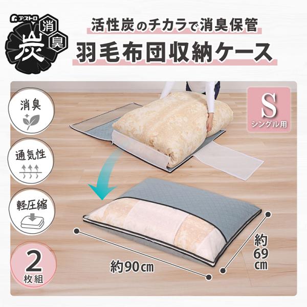 アストロ公式 製品保証付き 羽毛布団収納袋 2枚組 シングルサイズ 不織布製 活性炭消臭 ふとん 収納ケース スリム コンパクト 衣替え 軽圧縮 通気性 171-35