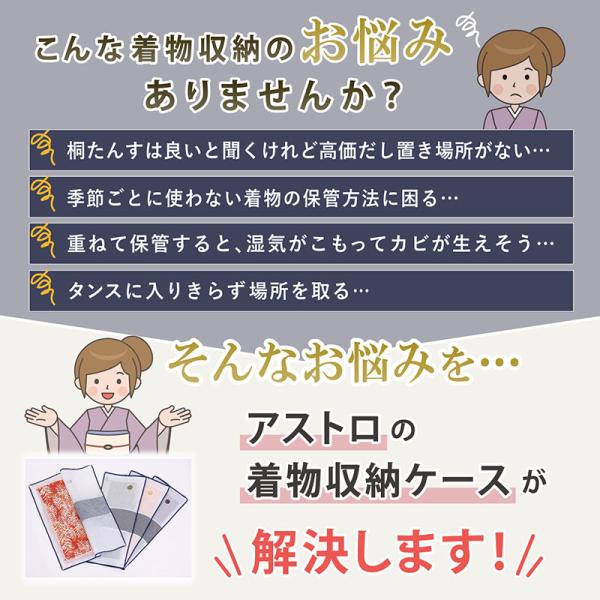 【 アストロ公式 製品保証付き 】 着物収納ケース 活性炭・珪藻土で消臭保管 不織布 着物 浴衣 振袖 袴 訪問着 七五三 収納袋 保存袋 防虫剤 小物入れ 615-30