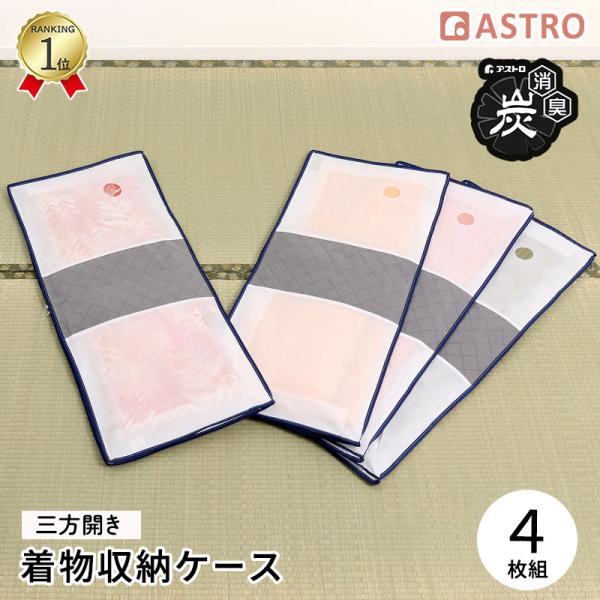 着物収納ケース 活性炭消臭 3方開き 4枚組 窓あり 着物収納袋 通気性の良い不織布 湿気やホコリなどの汚れをガード ファスナー式 アストロ 171-49