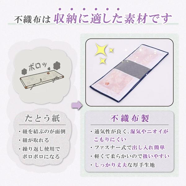 ●通気性に優れ厚みのあるしっかりとした不織布を使用。たとう紙より丈夫で破れにくく軽くて柔らかいので扱いやすい。
