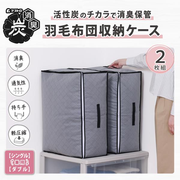 アストロ公式 羽毛布団収納ケース 2枚組 シングルサイズ・ダブルサイズ兼用 活性炭消臭 通気性の良い不織布製 脱臭 掛け布団 収納袋 収納ボックス 171-85