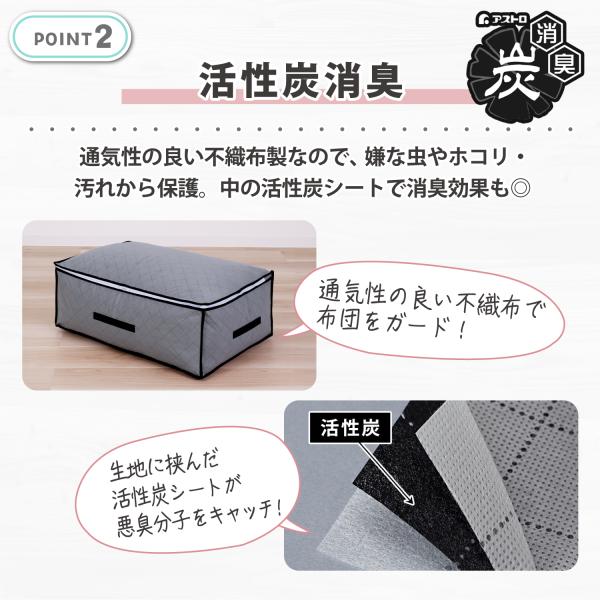 アストロ公式 製品保証付き 活性炭消臭 布団一式 敷布団収納袋 掛け布団 敷布団 ふとん収納 収納ケース 収納袋 押入れ 171-39