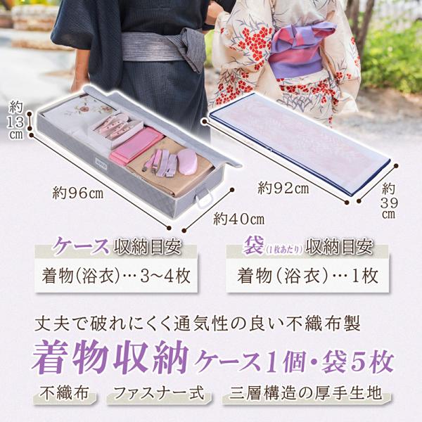 着物収納ケース 収納袋5枚付き 通気性の良い不織布 埃・汚れ防止 浴衣 保管袋 たとう紙の代わり 小物入れ 防虫剤入れ ネームホルダー アストロ 173-04