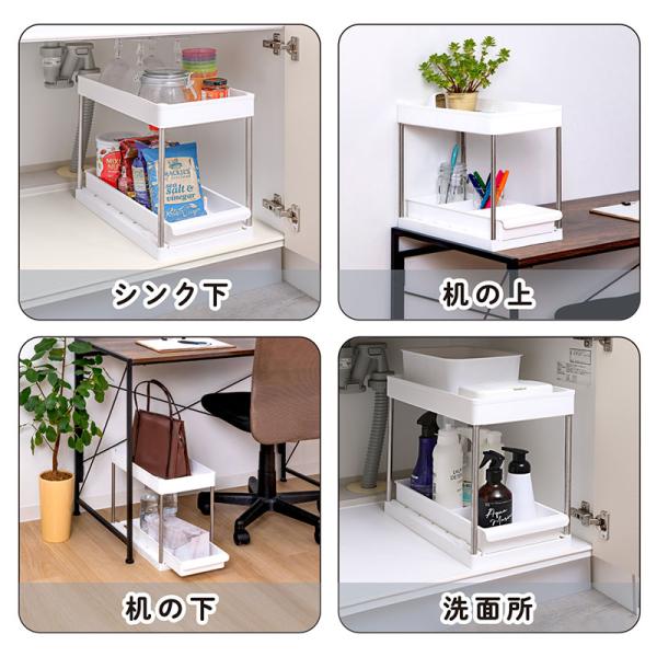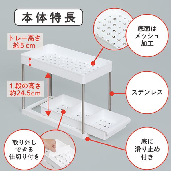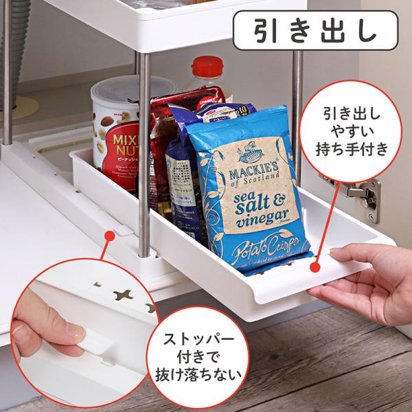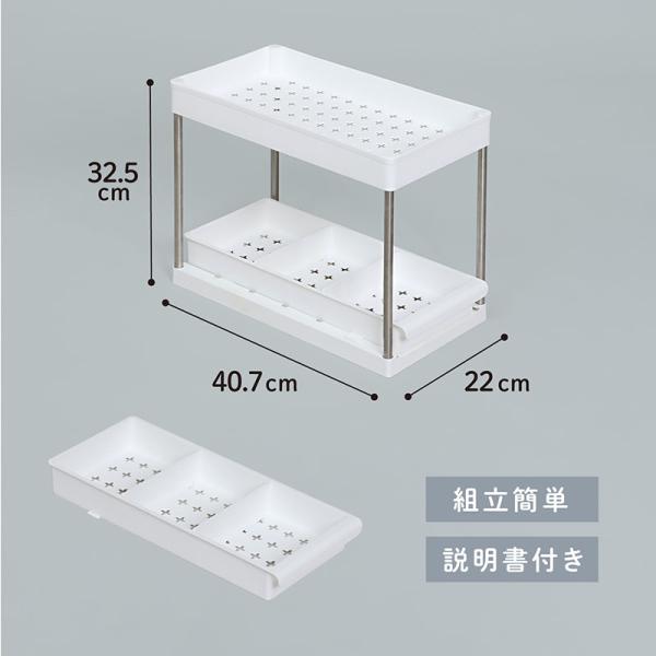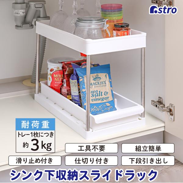 アストロ シンク下収納ラック ホワイト 下段スライド式 2段 キッチンラック 洗面台下 収納ラック キッチン収納 調味料ラック 台所 洗面所 仕切り付き 310-26