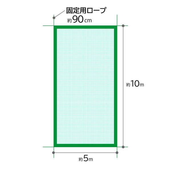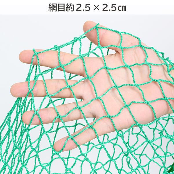 サイズ:約幅5m×奥行10m、網目約2.5×2.5cm、紐約90cm、
