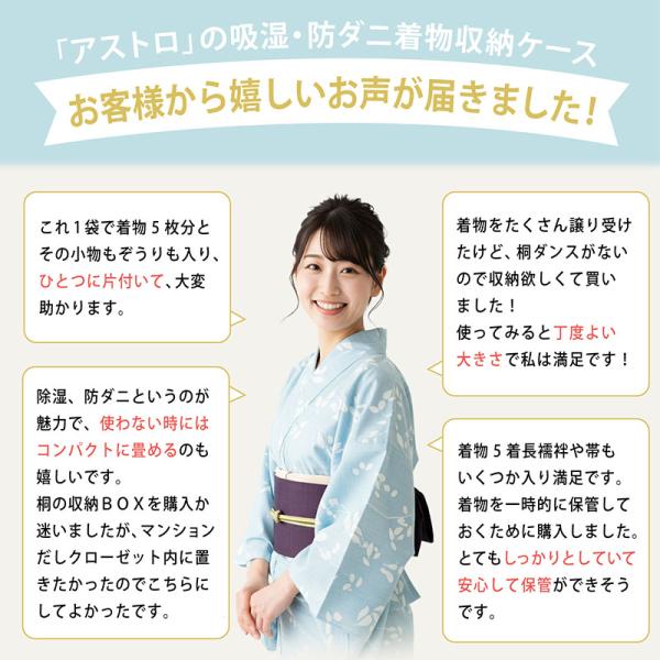 【 アストロ公式 製品保証付き 】 着物収納ケース 活性炭・珪藻土で消臭保管 不織布 着物 浴衣 振袖 袴 訪問着 七五三 収納袋 保存袋 防虫剤 小物入れ 615-30