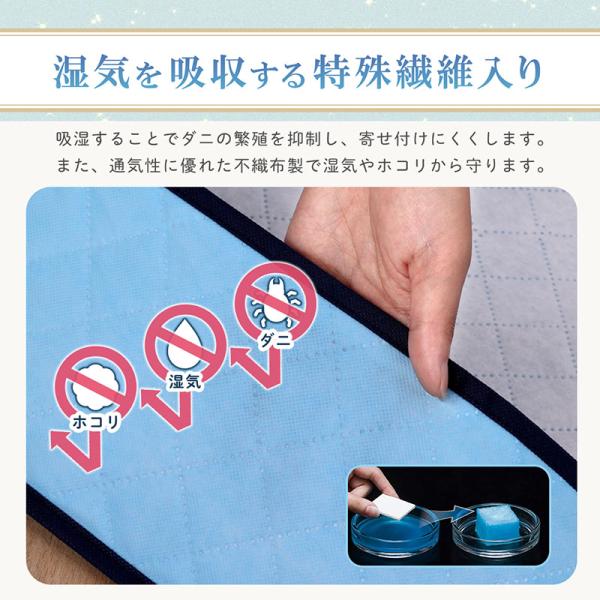 ●湿気を吸収することで高温多湿を好むダニの繁殖を防ぐ!湿気やニオイもこもりにくいので、長期間でも心配せずに保管ができる。