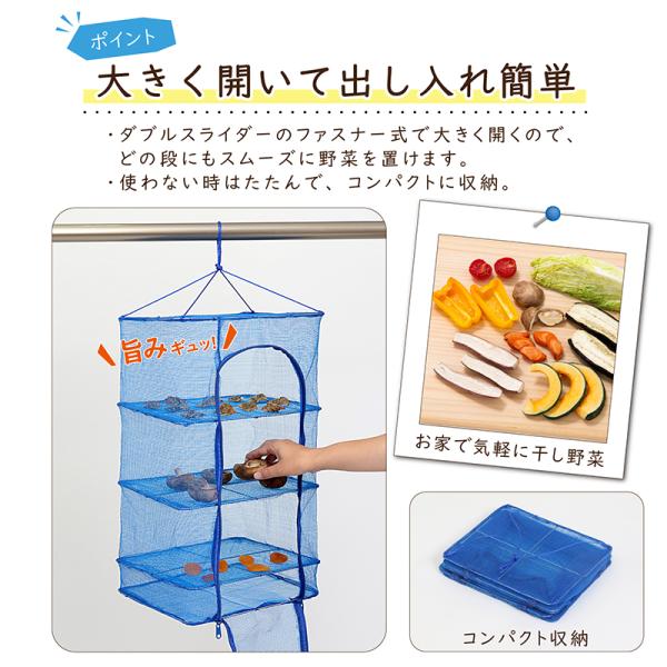干しかご ブルー 3段 干し野菜ネット 万能干しかご ドライネット 干し網 干物 乾物 折りたたみ アストロ 625-01