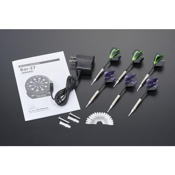 Bar-27は、高性能、多機能電子ダーツです。ボディはマットブラックで、テカテカプラスチックの安物感はなく、高級仕様の逸品です。もちろん点数自動計算で、音響アナウンス効果で盛り上げます。スローイングラインも付いていて、ライバルに差をつける逸品です。