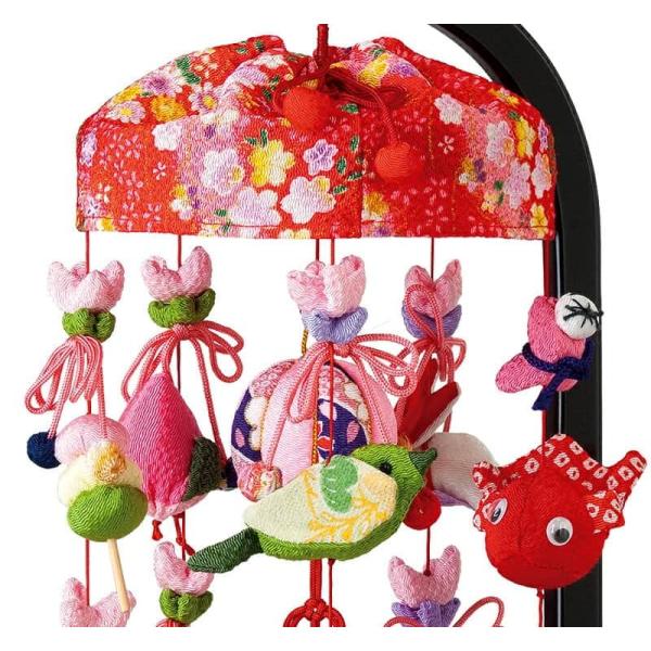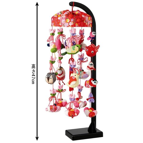 こちらのつるし雛は飾り台付きでお届けいたします。 スタンドサイズ:高さ47(cm)