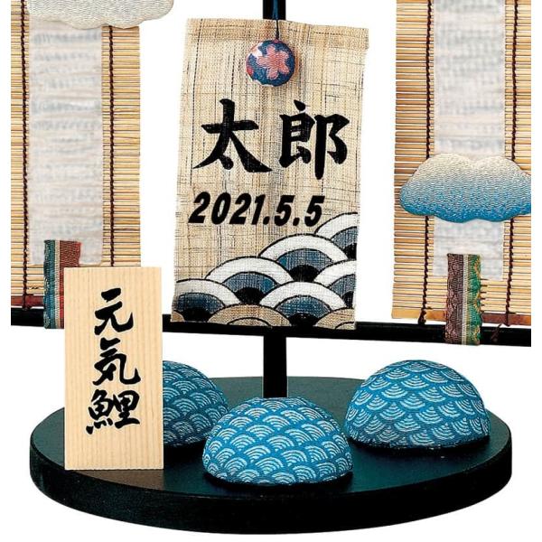 吉祥文様としても知られる青海波文様を描いたタペストリーにお名前やお誕生日を入れれば、初めてのお節句がより一層盛り上がること間違いなしです。