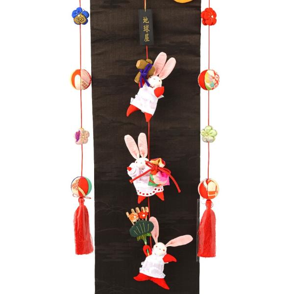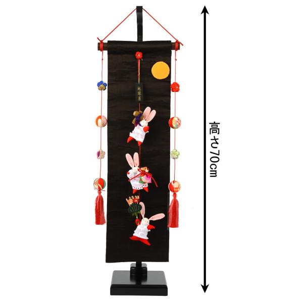 ひな人形 雛人形 世界一 ギネス認定の地球屋 ギネス認定の地球屋が仕立てた、コンパクトなサイズのつるし飾りです。小さいながらもうさぎの素材には正絹を使った本格仕様。つるされたモチーフはひとつひとつがコロンとしたかわいらしいフォルムです。女の子の象徴である3匹のうさぎが愛らしいですね。お金が貯まるように、センスが良くなるように、幸せを呼ぶようにと、願いを込めております。また女性としての幸せな家庭の象徴としてエプロンを着ております。うさぎは可愛いだけでなく、たいへん縁起がよいとされており、お節句のお祝いにぴったりの一品です。単品でお飾りいただくだけでなく、雛人形のそばに飾ればよりいっそうお節句の雰囲気をお楽しみいただけます。 サイズ:高さ70(cm)